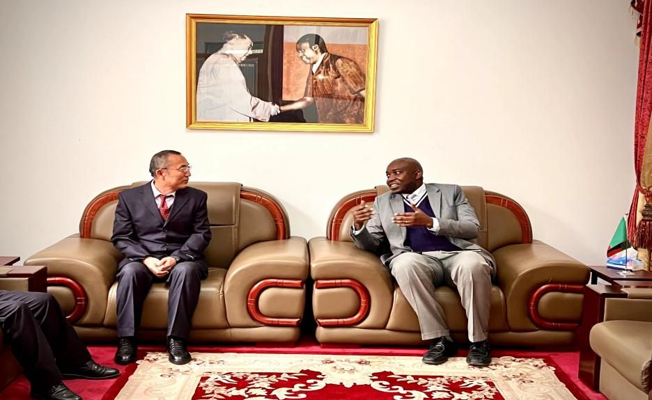 (上图为段建军会长和赞比亚驻华大使交谈)