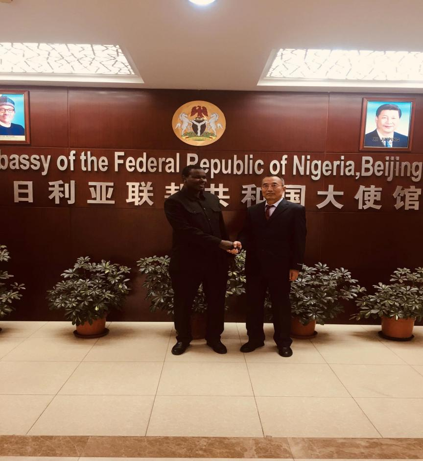 (上图为段建军会长与尼日利亚驻华高级参赞/大使助理合照)