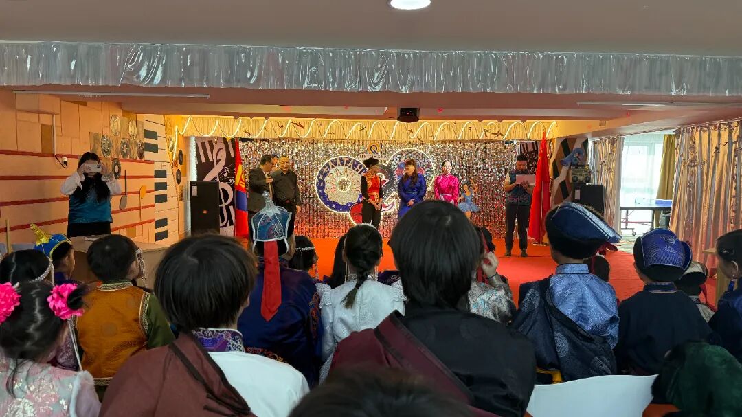 随后,吴校长带领大家参观了学校的各个功能区域。走进教室,身着蒙古民族服装的孩子们用灿烂的笑容和热情的问候迎接了研究会成员。他们用稚嫩而响亮的声音唱起中文歌曲,那欢快的旋律在教室里回荡,仿佛是两国文化交流的美妙音符。孩子们纯真的眼神和充满活力的表演,让在场的每一个人都感受到了中文教育在这片土地上绽放的魅力。